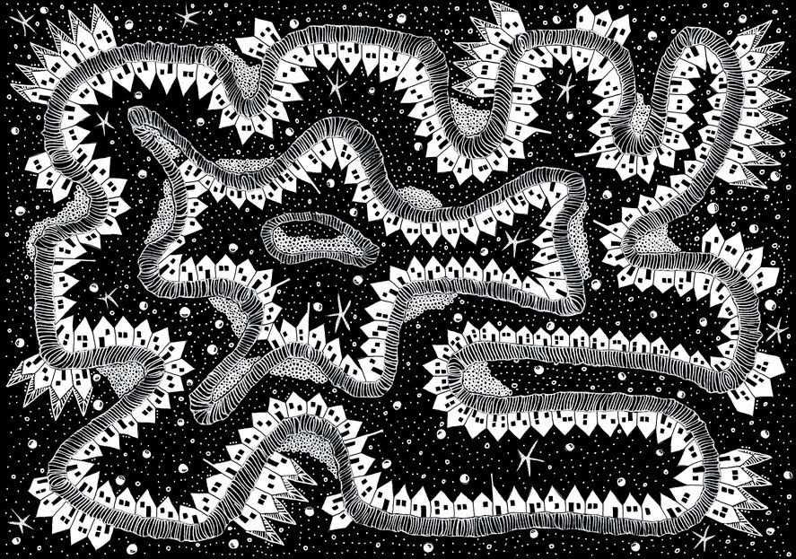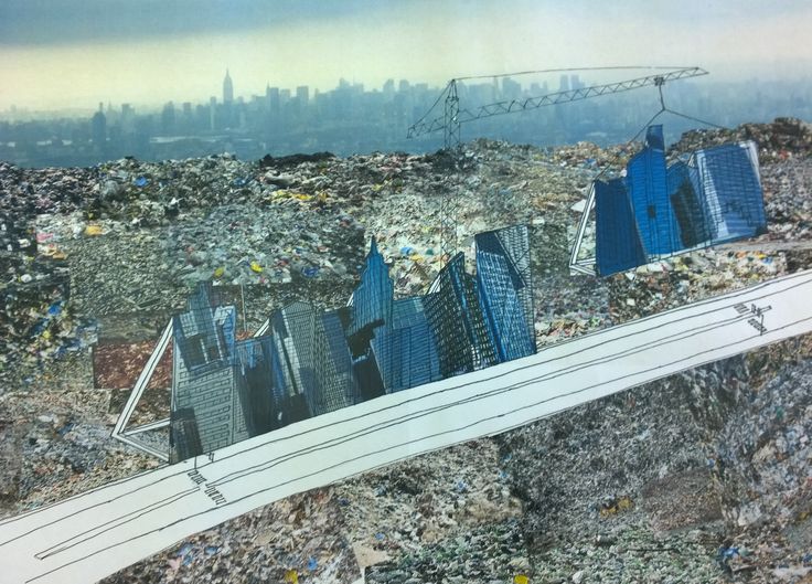 Leonia’s rubbish little by little would invade the world, if, from beyond the final crest of its boundless rubbish heap, the street cleaners of other cities were not pressing, also pushing mountains of refuse in front of themselves. Perhaps the whole world, beyond Leonia’s boundaries, is covered by craters of rubbish, each surrounding a metropolis in constant eruption. The boundaries between the alien, hostile cities are infected ramparts where the detritus of both support each other, overlap, mingle.