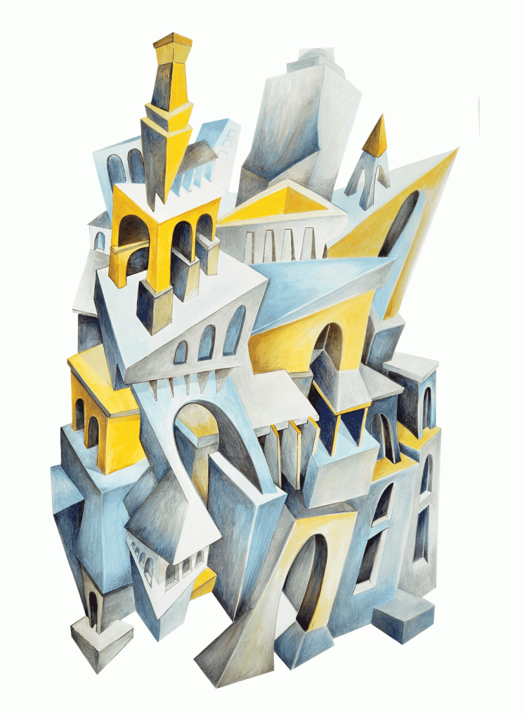 If dissatisfied with the answers, someone puts his eye to a crack in a fence, he sees cranes pulling up other cranes, scaffoldings that embrace other scaffoldings, beams that prop up other beams. ‘What meaning does your construction have?’, he asks. ‘What is the aim of a city under construction unless it is a city? Where is the plan you are following, the blueprint?’.