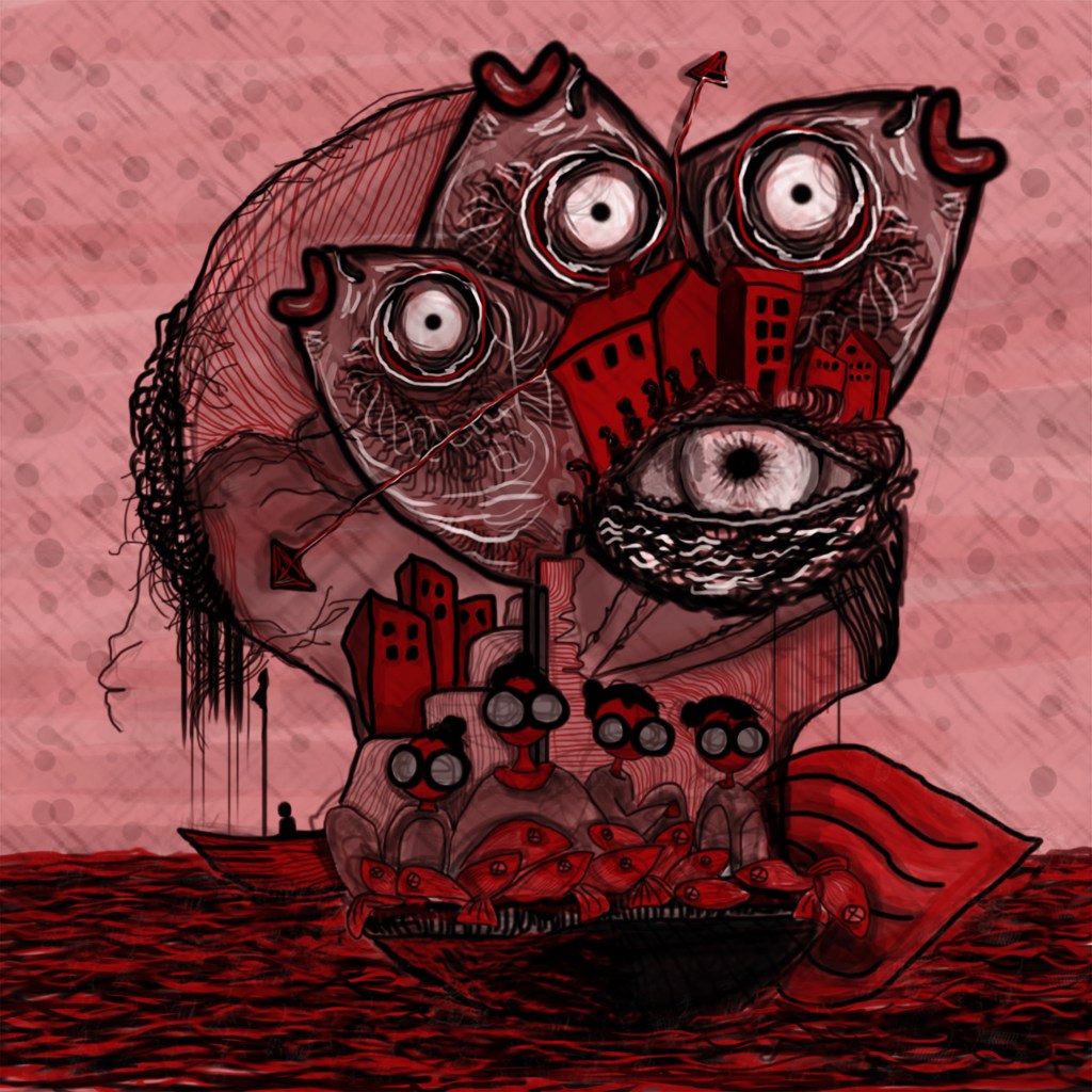 To cope with this fear that he has, the protagonist then comes up with a strategy for himself to follow. He thinks to himself, ‘I need only continue looking at them, and the resemblances will dissolve, alien faces will appear, bearing anguish’. This is a real mental process, as explained by the Baader-Meinhof Phenomenon. The Baader-Meinhof Phenomenon posits that, for instance, when you start repeatedly noticing red cars around you, it is not that there are suddenly more red cars; it is just that your awareness of them has increased, and you notice them more. The red cars were always there.